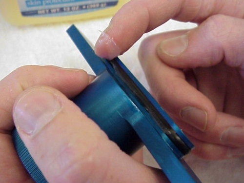 Take the new O-ring and pull it lightly onto one end. DO NOT stretch the O-ring longer than necessary as it will cause the O-ring to seat too far into the groove and will not seal well.