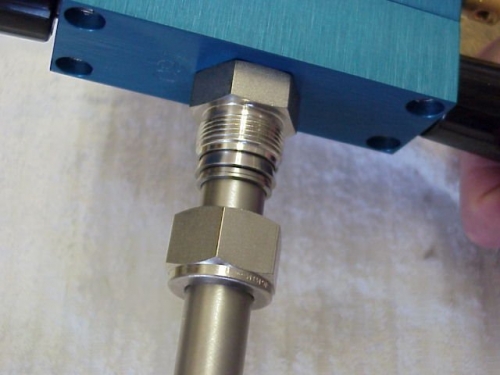 Make sure all the ferrules and nut are on properly as shown above. Tighten nut finger tight and then tighten one flat (1/6 of a turn) with 1 inch wrench.