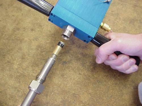 First, loosen the outer nut of the fitting that holds the Compression Tube into the chamber using the 1” Standard Wrench