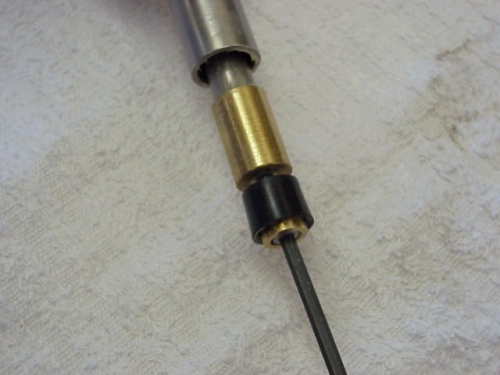 Clean all the parts and change the rubber piston cup with the new one. Put the cap screw back through the brass part and put some thread locker on the exposed threads.