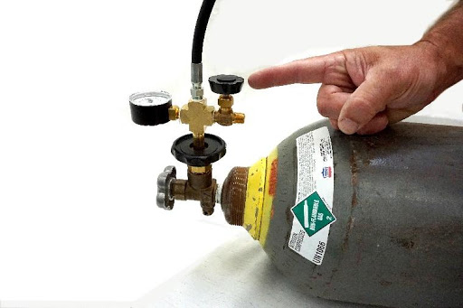 The next step should be done carefully … Barely open the valve — Just a crack until you can hear the gas entering the Internal Tank. As the sound becomes less, open the valve a little bit more. Continue this process until the sound stops completely and the Internal Pressure of the tank has equalized with the Master Cylinder.