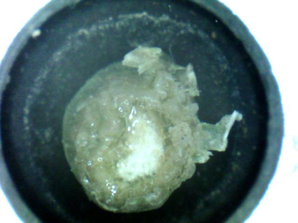 The actual “end-point” or Leaf Water Potential is read when water comes to the surface of the end of the petiole. This water will come from the center of the petiole. In grapes there will actually be a slight color change in the surface as the water appears. This is the “end-point”. Immediately turn the Control Valve to the OFF position.